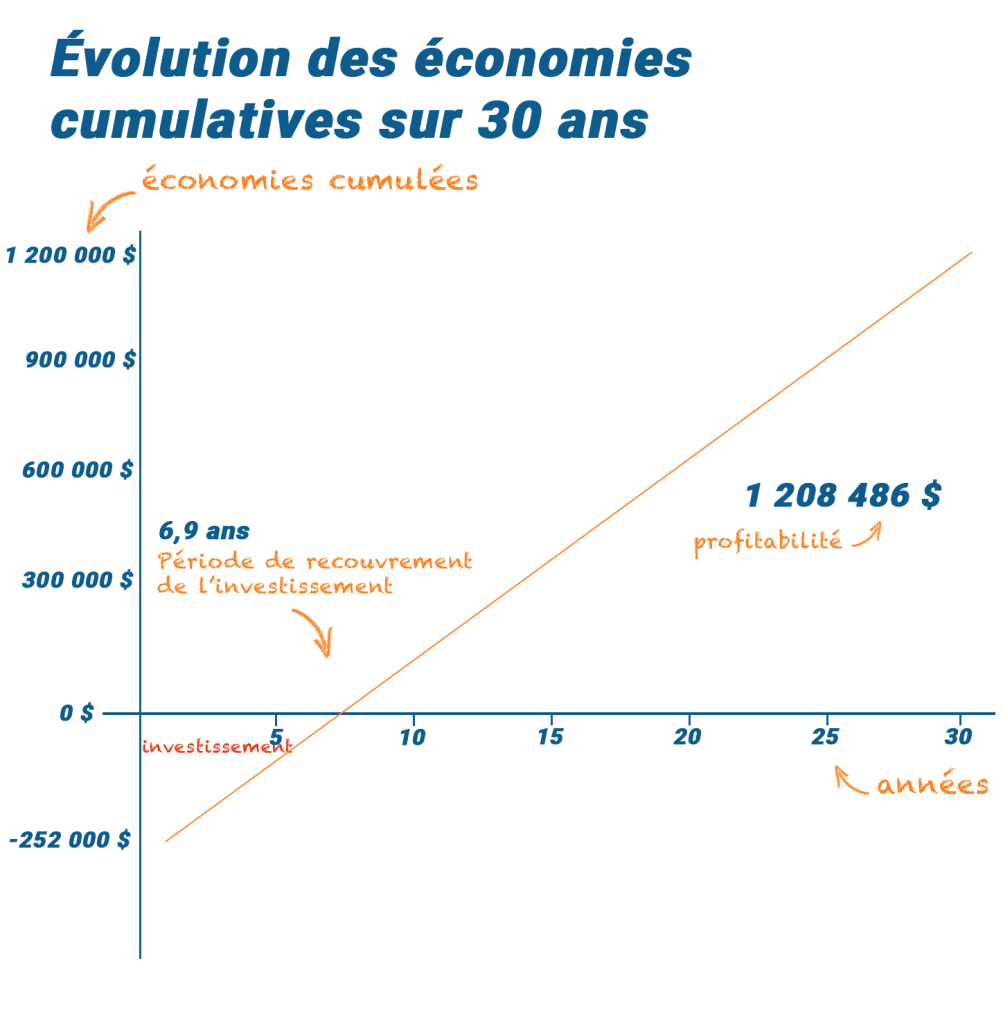 • Économies en électricité : 8 175$ la première année (+4.8% par année)